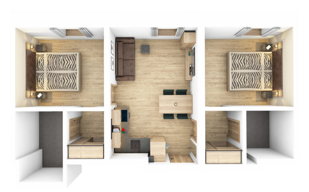 • 2 Doppelbettzimmer, teilweise mit begehbarem Kleiderschrank